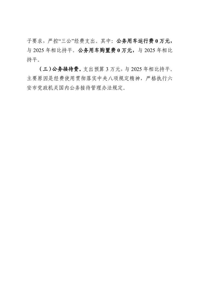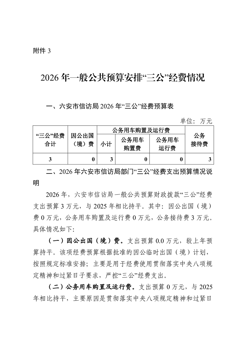 六安市信访局2026年一般公共预算安排“三公”经费情况