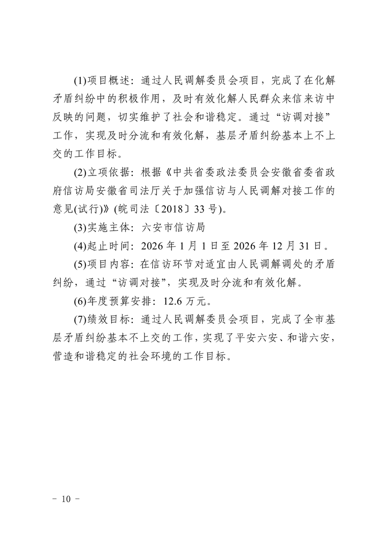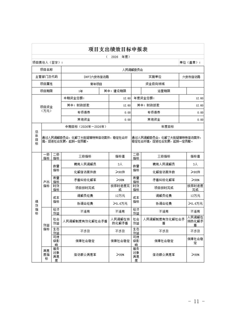 附件表14六安市信访局2026年项目支出绩效目标表(1).pdf